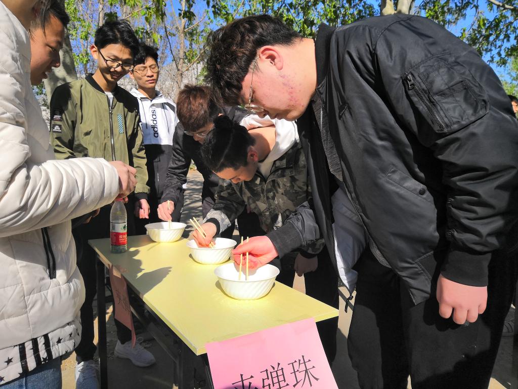 与传统运动会相比,趣味运动会是将竞技与娱乐相结合,着重于鼓励同学们参与合作和交流,充分发扬团体合作的精神。比赛项目丰富多彩,趣味性十足,合作性较强,涵盖了托球跑、夹弹珠、“手忙脚乱”、沙包投准、男女混合400米接力跑、集体跳大绳、螃蟹背西瓜、盛水接力、数字折返跑共9个项目。三月乍暖还寒,在热闹的气氛中,每个人都在赛场上或奋力拼搏,或加油打气。在"盛水接力的赛场上,同学们跃跃欲试,比赛的哨声吹响时,大家奋力前进以取得更好的成绩;“沙包投准”的每次得分都赢得大家热烈掌声;在“手忙脚乱”项目中,参赛队员们需要小心翼翼,紧张刺激地用手和脚按规定交替前进以完成指定路线。
