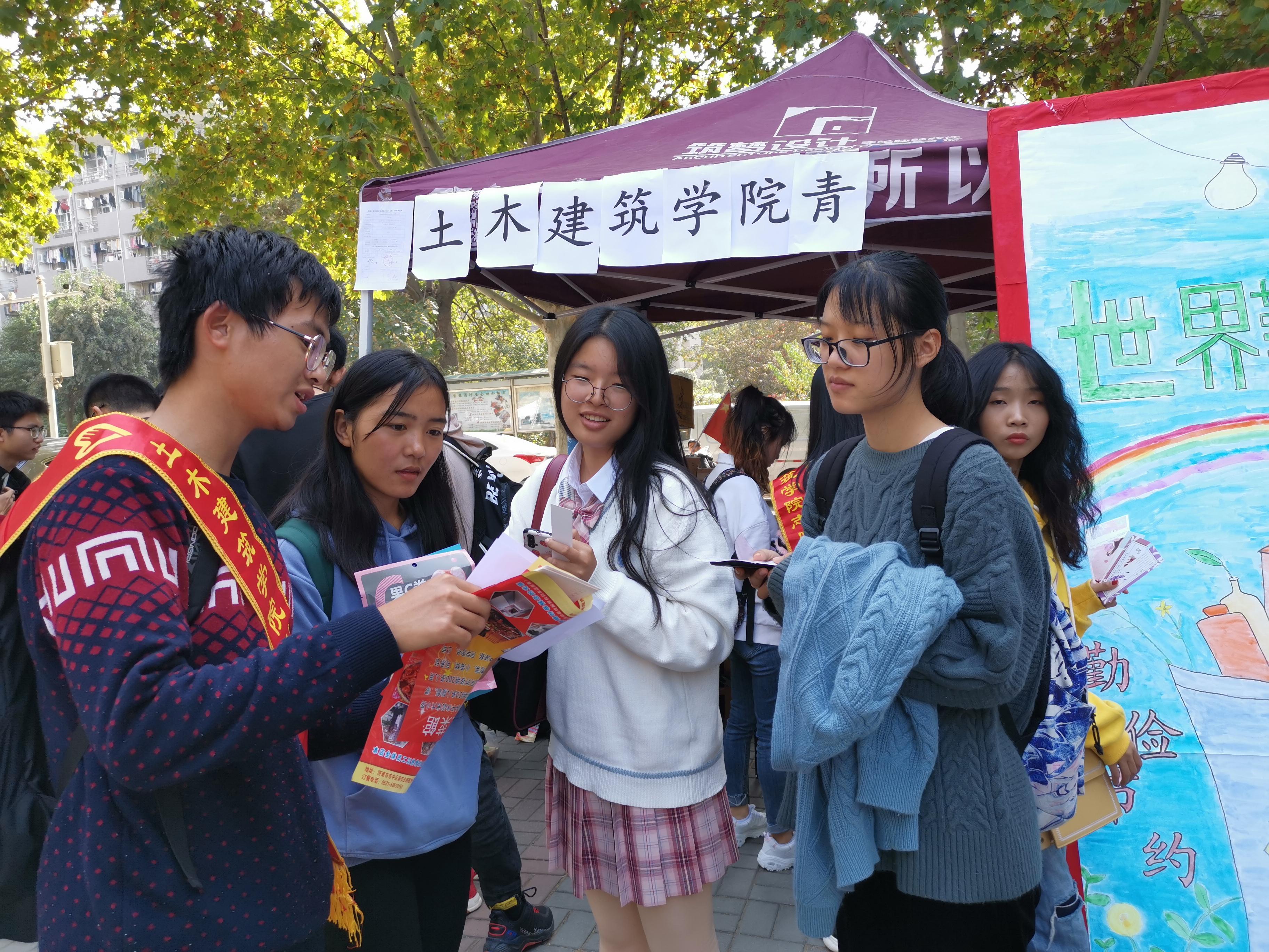 志愿者们来到济南大学八食广场,开展“世界勤俭日”志愿活动。