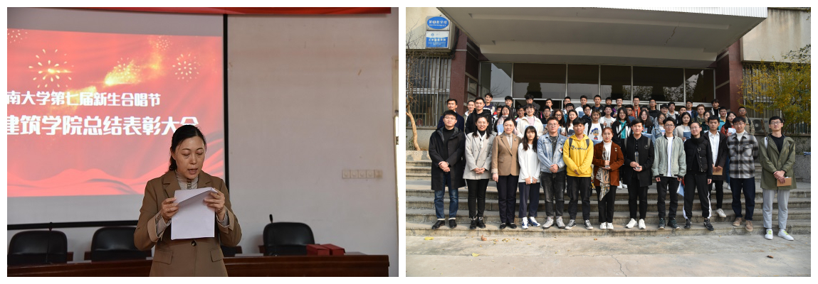 党委副书记、副院长朱小燕向在场师生宣读了济南大学第七届新生合唱节嘉奖令,代表学院向此次取得佳绩的所有同学表示衷心的祝贺和感谢。负责此次合唱节赛事的学生会组织素质拓展中心、文宣中心分管主席分别对部门工作做了全面总结。辅导员李婷、刘健成对两个中心的部门总结提出了相应的改进建议,并表示了高度的赞扬和肯定。大会进行中,朱小燕书记及辅导员刘健成、李婷为全体主创人员颁发了济南大学第七届新生合唱节比赛一等奖奖杯,与组织统筹此次新生合唱节工作的负责人合影留念,并为积极参加此次新生合唱节的2020级新生发放奖品以作表彰和鼓励,现场气氛十分热烈。